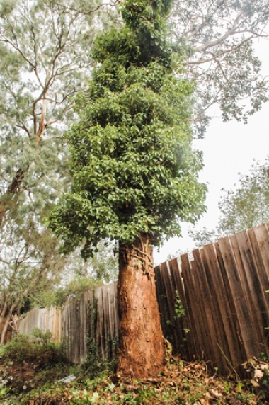 The problem I had was the ivy at the top was beyond my reach. I did not have a ladder high enough. Also it would be a bit dangerous for an unskilled tree lopper like me to attempt to clear the ivy from the tree.